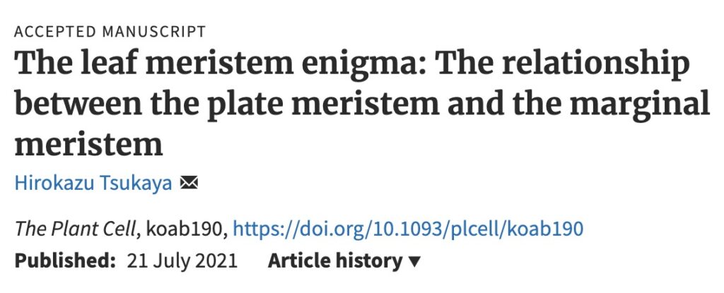 Hirokazu Tsukaya, The leaf meristem enigma: The relationship between the plate meristem and the marginal meristem, The Plant Cell, 2021; koab190, https://doi.org/10.1093/plcell/koab190