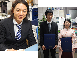 一方、右写真の2人は、4月から当研究室に進学の新・理学士たちです。共に卒研を当ラボで経験しました。これからはいよいよ本格的な研究活動に入ります。フレッシュな研究が始まる季節となりました。