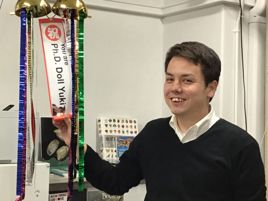 本審査合格Education Event Research このたびDoll君が無事、博士論文の本審査をパスしました。写真は最近ラボで恒例のくす玉割りに応じた本人の笑顔です。かなりのデータ量に支えられた、多面的な研究成果は審査員からも高評価だったようです。今後のますますの活躍を祈念します。