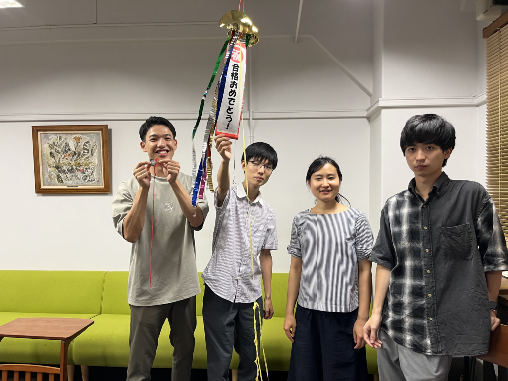 ながらく米国留学で不在だった中山助教が帰国し、国内でのラボ活動を再開しましたので、先日、お帰りなさいパーティーを開きました。また少し前に大学院入試の合格発表があったため、合格者のうち当日都合の付いた4名も招いて、ついでに内定祝をしました。今後のみなさんの活躍が楽しみです。