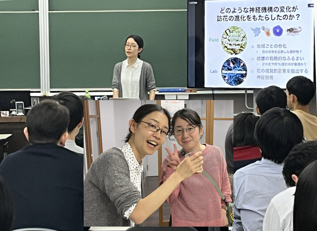 生物科学セミナーEducation Event 4月2日、名古屋大学の石川由希先生に今学期最初の生物科学セミナーをしていただきました。発表中から質問が絶えず寄せられる刺激的な内容で、聴衆の皆さんも大いに満足されたもようです。セミナーのあとは場所を移してベルギービールで慰労会。写真中央は、両方参加された隣の研究室の片山なつ先生とのツーショットです。