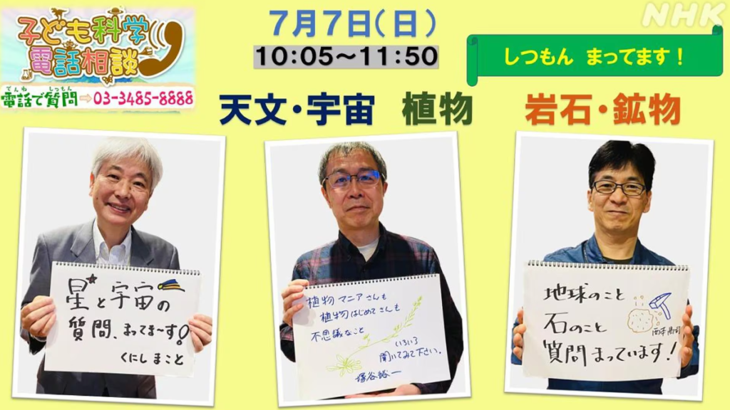 「植物」についての質問に塚谷教授が回答します。子ども科学電話相談(NHKラジオ第1)7月7日(日)午前10時05分~11時50分です。