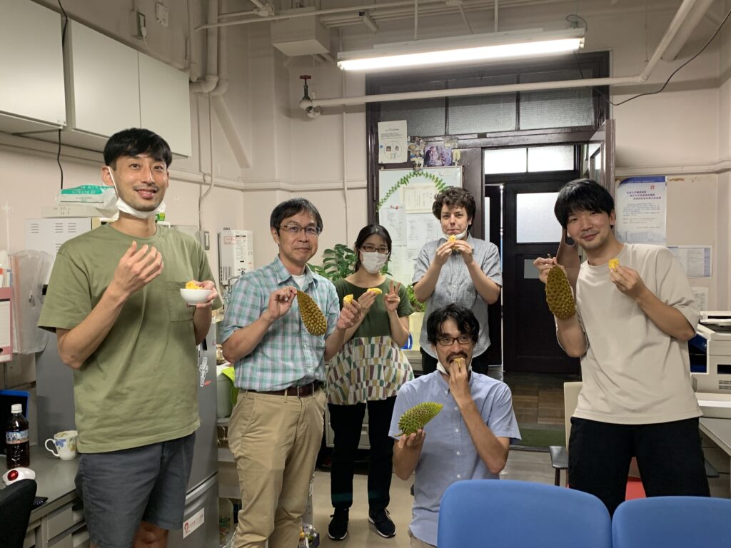 We had a Durian party!Event The other day, Professor Tsukaya received some beautiful durians, and we all had a durian party!
