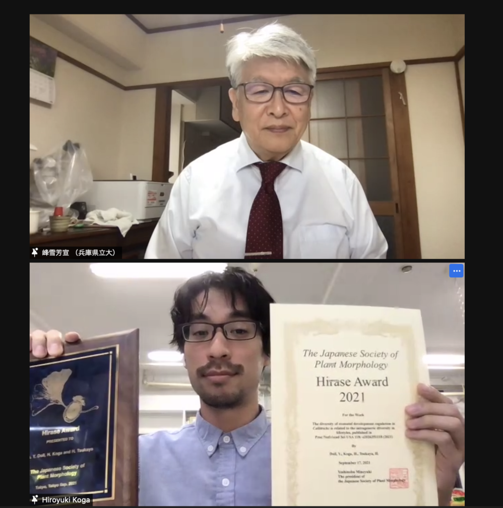 Assistant Professor Koga in our laboratory has received the Hirase Award from the Japanese Society for Plant Morphology! The Hirase Award is given to an original and outstanding paper that contributes to the advancement of plant morphology.
